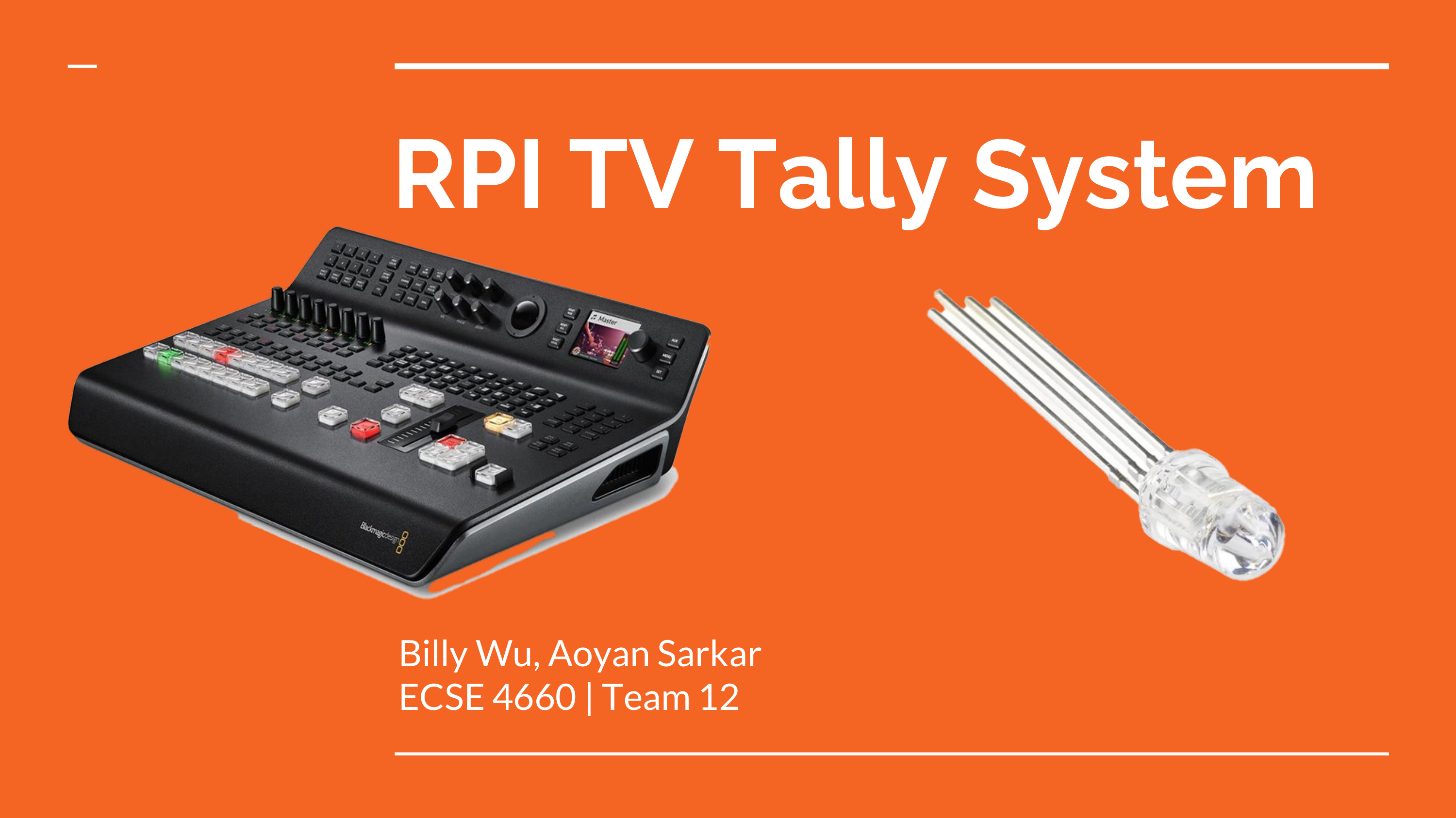 projects Show All16 Communications16 2025 RPI TV Tally System Billy Wu, Aoyan Sarkar Spring 2025 Qroma-Sense Aidan Rosenblatt and Harper Chisari Spring 2025 Greenhouse Monitoringwith LoRa Raj Bakhunchhe and Matthew Fiorenza Spring 2025 Luggage Tracking & Anti-Tampering Device Alek Krupka, Joseph Pizzimenti, and Julian Edelman Spring 2025 Lab Room Management System Mu Li and Yunjie Wang Spring 2025 Real-Time Environment Monitoring System for Greenhouses Kerry Koi and Zhongze ‘Eric’ Xiang Spring 2025 Healthcare Monitor Peggy Tobar and Ray Zhu Spring 2025 RF Grid Movement Tracker Gabriela Crother-Collado and Joseph Marino Spring 2025 Smart Lock System Zhaolin Qiu Spring 2025 A Lightweight Lossless Compression Framework for Continuous IoT Sensor Data Rui Xie, Asad Ul Haq Spring 2025 A Simple Stable & Simple Screen Software Timothy Miles Spring 2025 Real-Time Spectrum Sensing and Visualization Dan Fiumara and Abdul Muizz Spring 2025 Key Fob Direction Finding Blake Hopper and Sean Trimper Spring 2025 Smart Room AccessTracking Sean Fang and Thomas Byrne Spring 2025 Warehouse Inventory Tracker Josh Christensen and James Laun Spring 2025 Contactless Biometric Sensing Jimin Lee and Kaylin Rackley Spring 2025